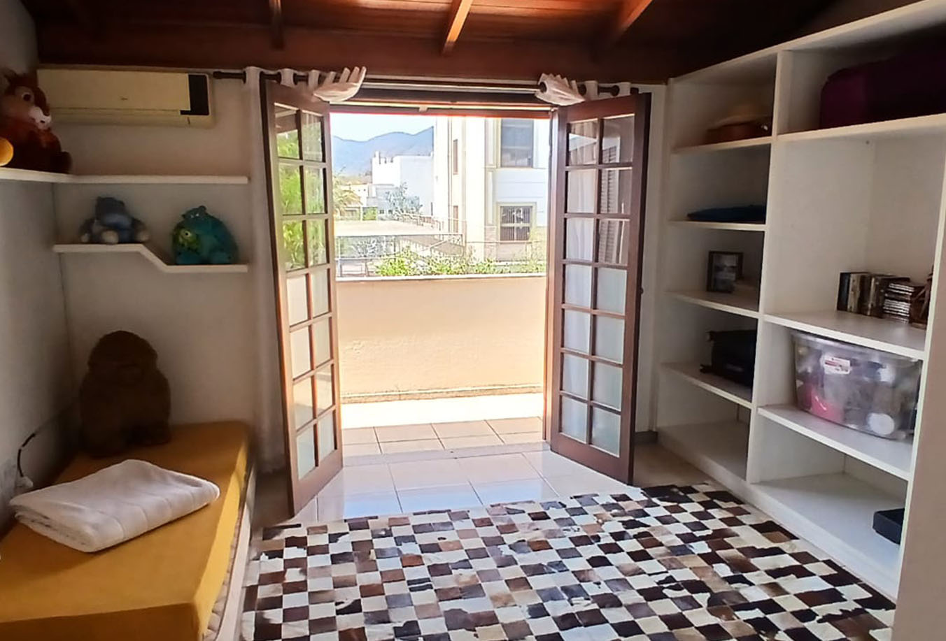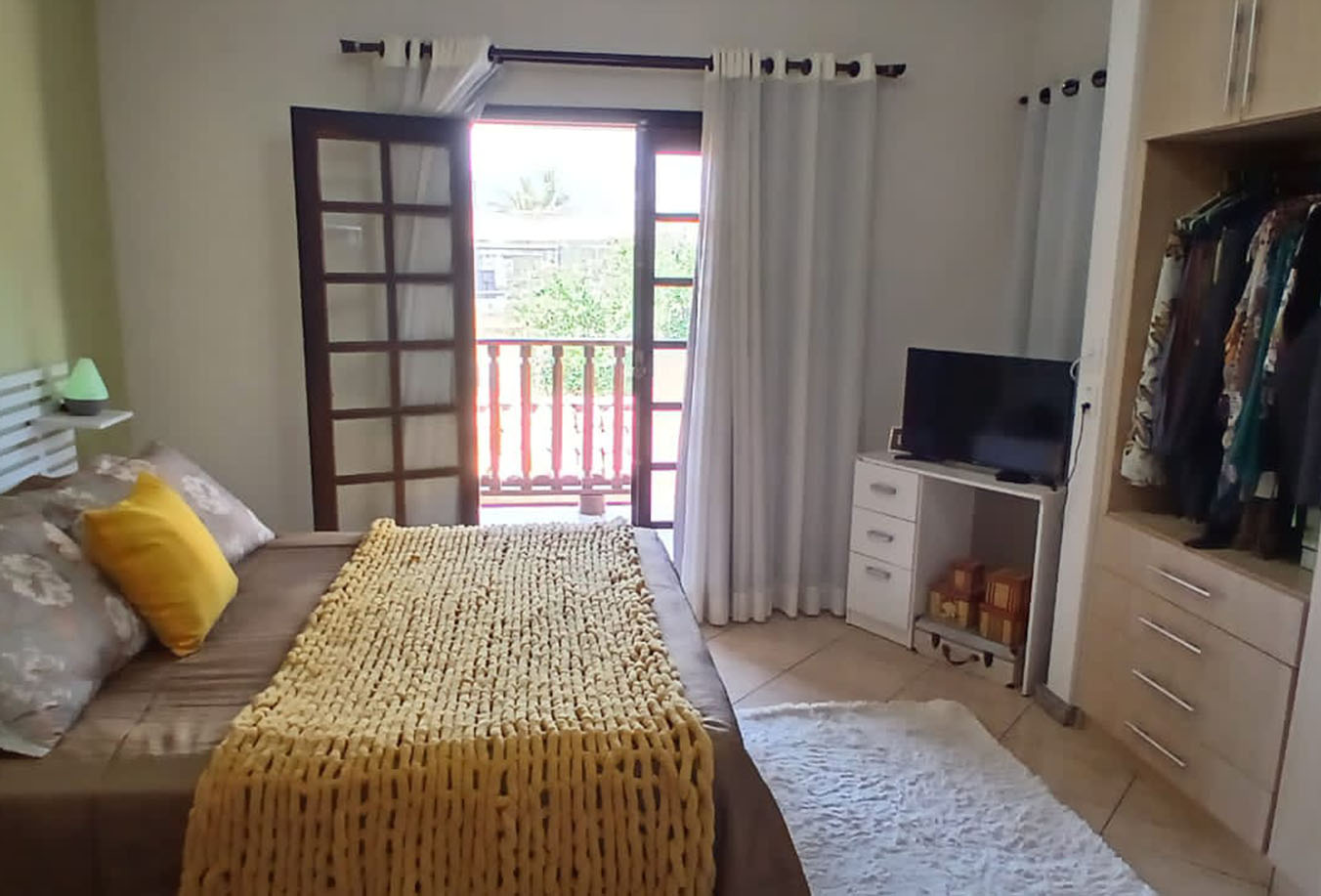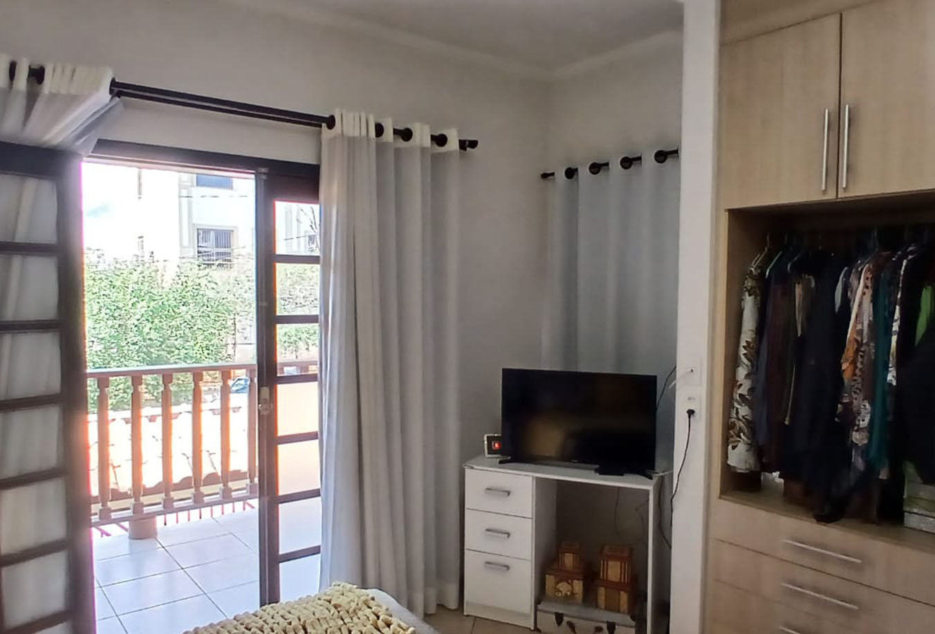 Suíte 2 (com sacada): iluminada, guarda-roupa embutido, varanda ampla para redes ou mesa, banheiro em ótimo estado