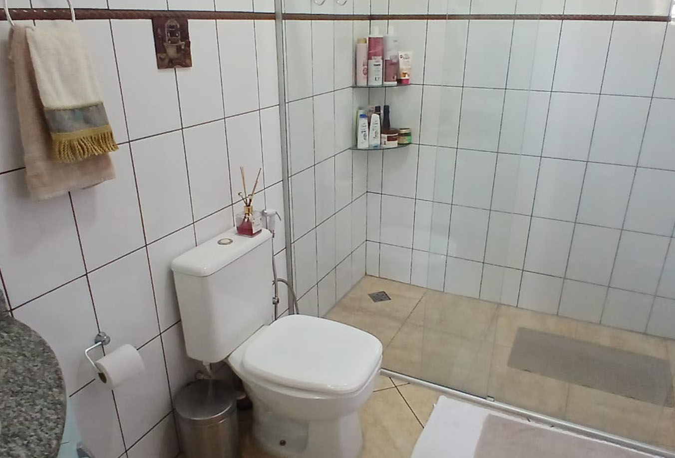 Suíte 1 (sem sacada): ampla, arejada, banheiro com box e gabinete