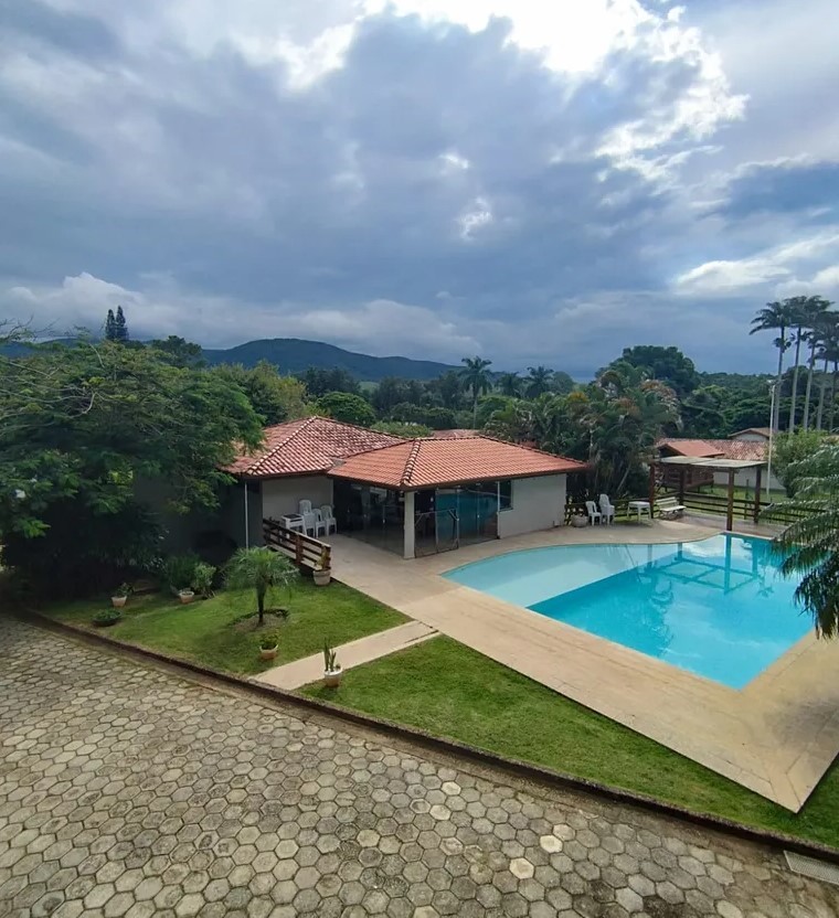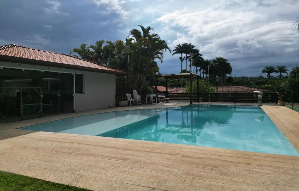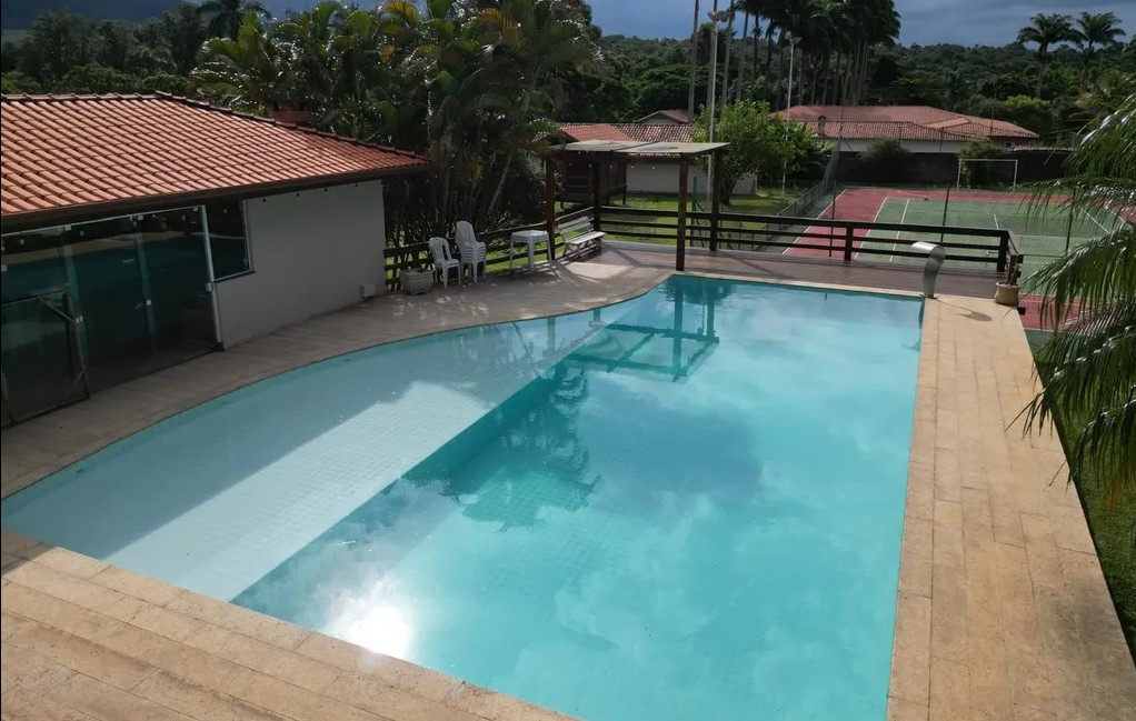 Estrutura completa de lazer: piscina, vestiários, salão de festas, salão de jogos, adega natural, bar e jardim
