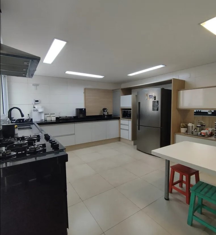 Cozinha planejada com copa, área de serviço com banheiro
